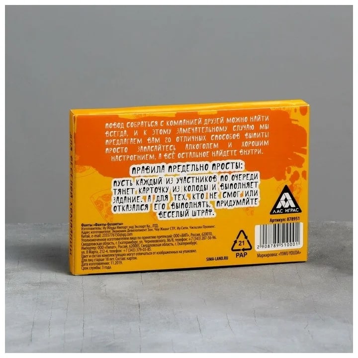 Купить игра для компании "фанты буханты" 20 карт от 100 руб. с доставкой до пункта выдачи в Омске. Интернет магазин ДекаМаркет. Оплата при получении.
